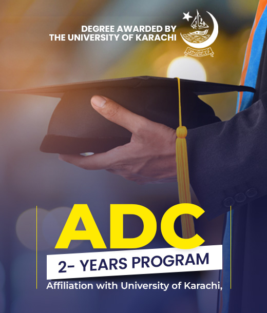 The Associate Degree in Commerce (ADC) is a comprehensive two-year commerce program affiliated with the University of Karachi, conducted under an annual examination system with exams held every December. This program is ideal for students seeking a focused two-year commerce qualification as an alternative to a traditional four-year degree. The ADC is equivalent to the former B.Com and qualifies graduates to directly enroll in the two-year BBA (Hons) program at SAIMS. Spanning two academic years, the curriculum includes 14 University-approved courses, combining academic rigor with practical business and commerce skills. The program is designed to build a strong foundation in accounting, finance, business management, and economics, along with essential leadership, analytical, and strategic thinking abilities. The ADC prepares students for promising careers in the corporate sector, banking industry, global business environment, and entrepreneurship. SAIMS proudly upholds a legacy of excellence, having secured top-three positions among University of Karachi-affiliated colleges in 2004 and 2005.